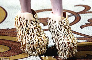 在此次的時裝發布會上,設計師展示了一組運用3D打印技術制作的根須狀高跟鞋,這些鞋子每層僅16微米,分別使用剛性黑色和白色不透明材料。而其發布的高端禮服則融合了日本和服的設計元素。