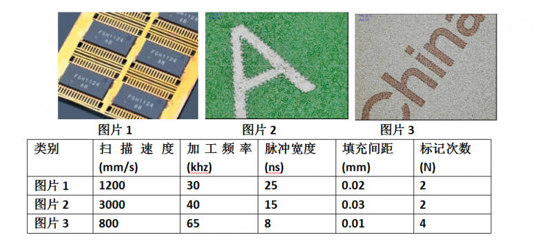 加工特點:低平均功率,小單脈沖能量,高頻率,多角度填充,高速度掃描
