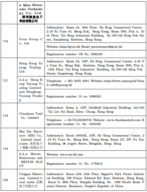 中國香港公司,向受制裁的俄羅斯實體供應微電子產品。
