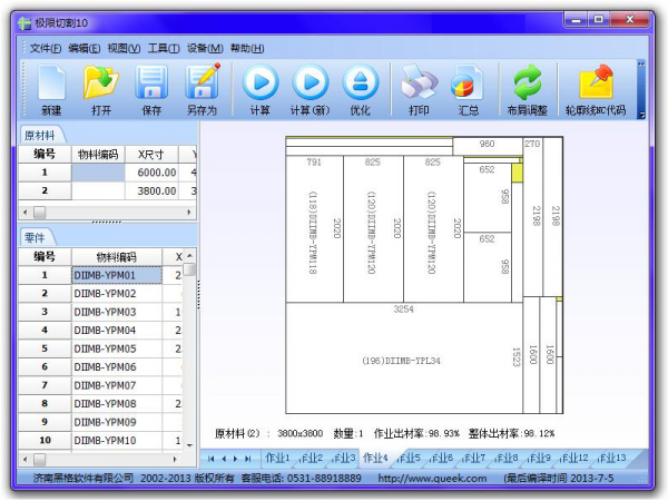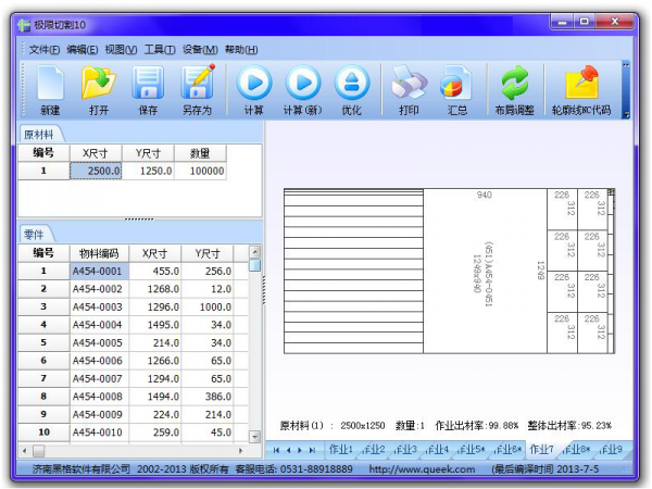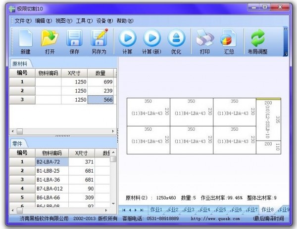 《極限切割》板材開料下料排料套料優化軟件