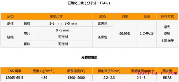 五氧化三鈦適用于增透膜;分光鏡;冷光膜;濾光器;高反膜;眼鏡鍍膜;反射膜