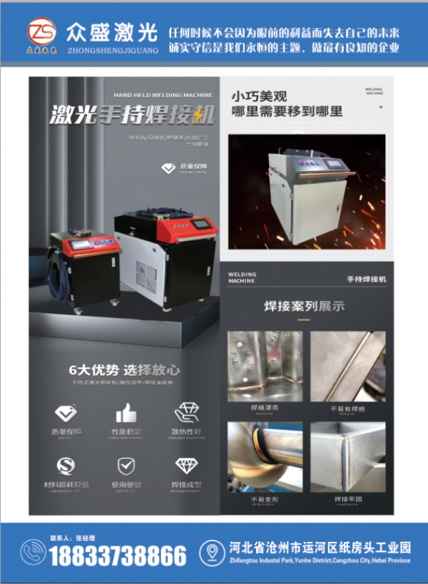 河北省滄州眾盛激光設備有限公司是以生產、銷售服務為一體的綜合性企業。本公司主要生產光纖激光打標機、激光焊接機、二氧化碳激光打標機、綠光激光打標機、紫外激光打標機,以及對不同需求定制的各類異型機、飛行、超長飛行打標機等產品,產品廣泛應用于建筑、橋梁、鋼結構、工程機械、治金建設、汽車、鈑金機箱加工、工藝禮品、電子產業、精密儀器儀表等行業。我們生產研發打標機,只為精益求精,尋求客戶的滿意!公司依托于本市激光產業園的資源建設,致力于以激光為核心技術的高科技現代化企業。引進高科技研發人才研制和開發高品質,高性價比的激光加工設備。助推我國制造業從粗放型、高能耗、低附加值模式向循環經濟、高附加值、高精度轉化,為提升整個國家的制造業發展水平和創新能力做出貢獻。