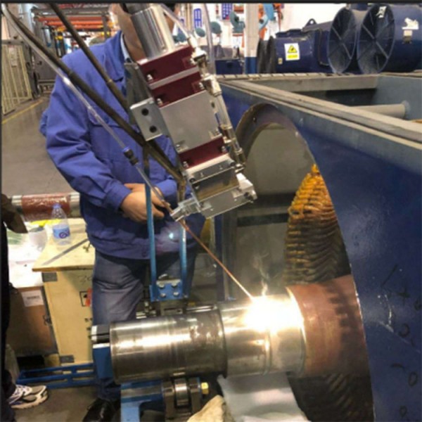 多功能熔覆/淬火設(shè)備主體采用六軸機(jī)器人設(shè)計(jì),配置變位機(jī)、旋轉(zhuǎn)主軸箱、尾座、托架及人機(jī)界面控制系統(tǒng),各部件可以實(shí)現(xiàn)聯(lián)動;配置具有加熱功能的雙伺服電機(jī)控制的雙筒高精度送粉器,可實(shí)現(xiàn)精準(zhǔn)送粉的同時對粉末預(yù)熱烘干;全水冷熔覆/淬火頭可實(shí)現(xiàn)24小時連續(xù)作業(yè);該設(shè)備最大回轉(zhuǎn)直徑?1400mm,裝夾工件最大長度10000mm,最大承載能力10T;可實(shí)現(xiàn)軸類、盤類零件的外圓及復(fù)雜曲面熔覆/淬火,也可對內(nèi)孔進(jìn)行熔覆/淬火。該類設(shè)備可根據(jù)客戶需求提供個性化設(shè)計(jì)。