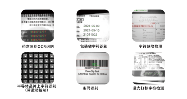 有無檢測、字符內容識別、字符位置判斷、字符缺陷檢測、字符變化檢測、條碼識別。