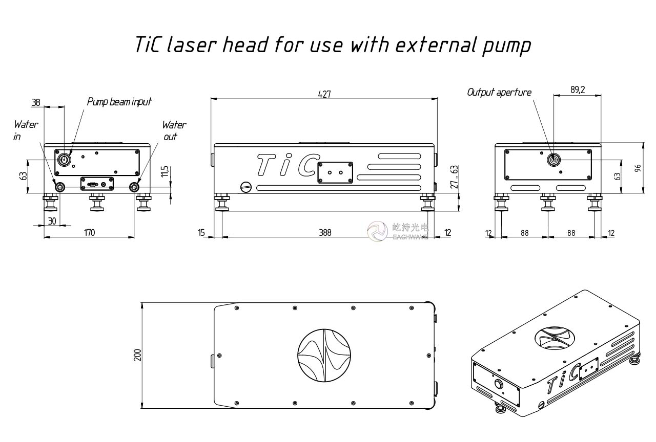 | 激光頭 | 427×300×129 mm(包括集成泵浦激光器) 427×200×123 mm(用于外部泵浦) | |