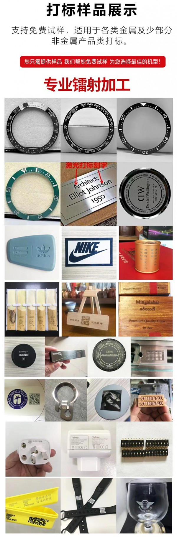 MOPA激光打標(biāo)機(jī)適用于金屬及非金屬材料的精細(xì)標(biāo)刻工藝。如數(shù)碼產(chǎn)品部件激光刻黑、手機(jī)按鍵、透光按鍵、手機(jī)外殼、按鍵面板、電子元器件、氧化、塑料標(biāo)記、工藝品禮品、氧化處理及鍍膜電鍍噴涂等表面處理。適用材料有金屬(含稀有金屬)、ABS、PVC、PES、尼龍、電鍍材料、鍍膜材料、噴涂材料、塑料橡膠、環(huán)氧樹脂等材料。