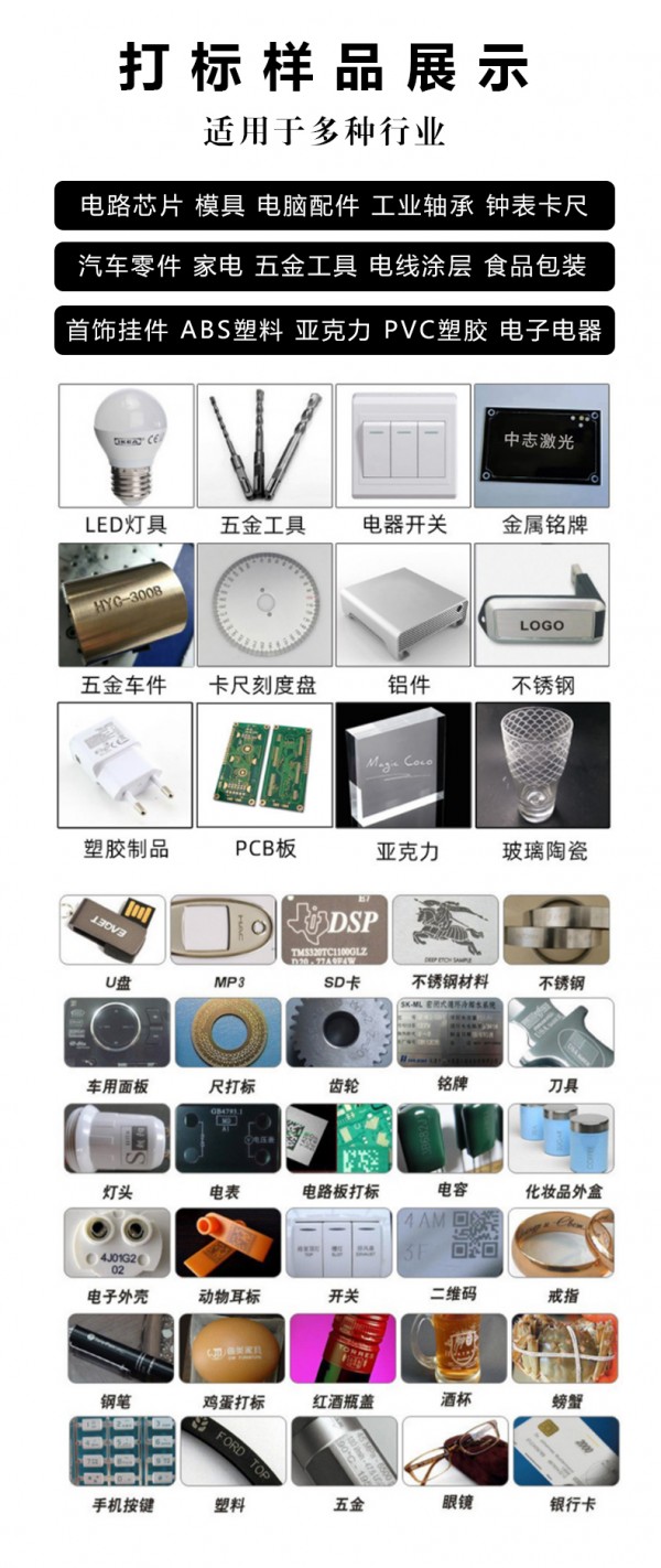 適用于玻璃、高分子材料等的物體表面打標,微孔加工。