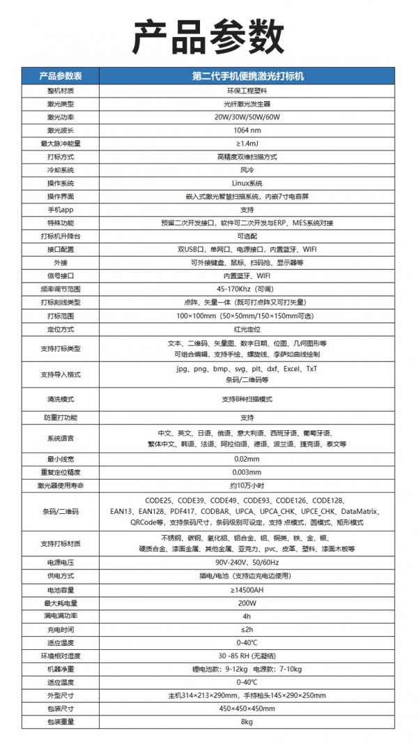 鐳之源手持激光打標(biāo)機(jī)產(chǎn)品參數(shù)