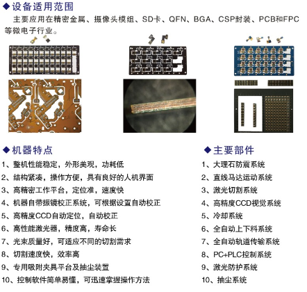 SD卡切割、攝像頭模組切割、指紋模組切割、精密金屬切割、LED陶瓷切割、藍寶石劃線、太陽能基板切割、顯示屏玻璃切割、硅晶圓切割
