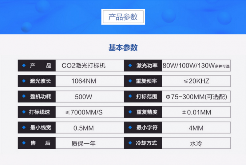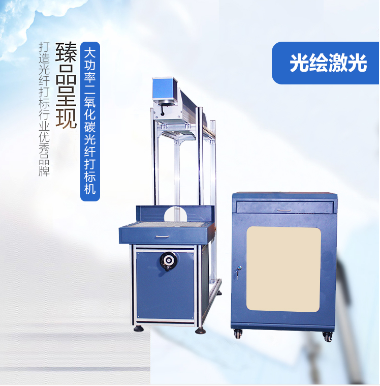 二氧化碳激光打標機: CO2 系列激光打標機核心光學部件均采用美國原裝進口產品,美國進口CO2 射頻激光器、采用高速掃描振鏡,為機器長時間連續高速穩定工作提供了可靠保障。 CO2 射頻激光器是一種氣體激光器,激光波長為10.64μm,屬于中紅外頻段,CO2 激光器有比較大的功率和比較高的電光轉換率。