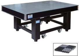 阻尼隔振支架采用碳鋼制作,四支撐表面噴黑色工藝烤漆,配有調節軸承,方便調節平臺水平,調節范圍上下可調25mm(200mmX200mm軸承支架) |