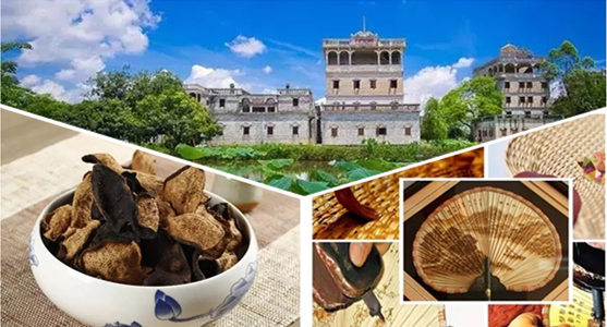 除了文人的文化熏陶,江門五邑地區數百年來依舊保留著傳統的建筑風貌和文化——如雕貼著百年不敗花朵的開平“碉樓”;夏日送來涼涼清風 的“驅以葵扇風,熏以艾煙濕”的新會葵扇;如“老廣東知道陳皮的好,以其藥性入膳,烹制珍饈百味;中醫懂得陳皮的好,用陳皮入藥,治愈頑疾......”,大家健康的守護神——新會陳皮。