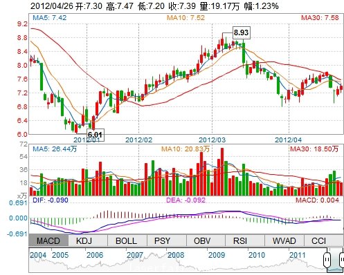 今 開: 7.30 成交量: 191701手 振 幅: 3.70% 最 高: 7.47 成交額: 14053.20萬 換手率: 2.03% 最 低: 7.20 總市值: 77.18億 市凈率: 2.59 昨 收: 7.30 流通市...