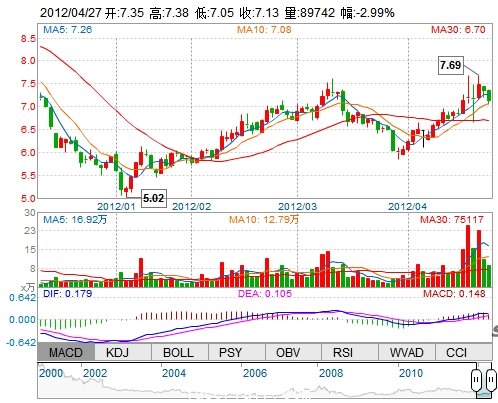 | 今 開: | 7.35 | 成交量: | 89741手 | 振 幅: | 4.49% |