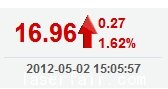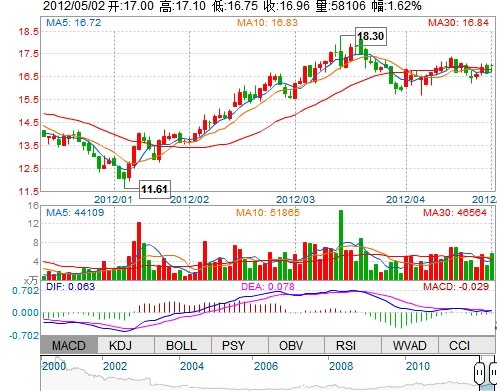 今 開: 17.00 成交量: 58106手 振 幅: 2.10% 最 高: 17.10 成交額: 9847.23萬 換手率: 1.43% 最 低: 16.75 總市值: 75.57億 市凈率: 2.86 昨 收: 16.69 流通...