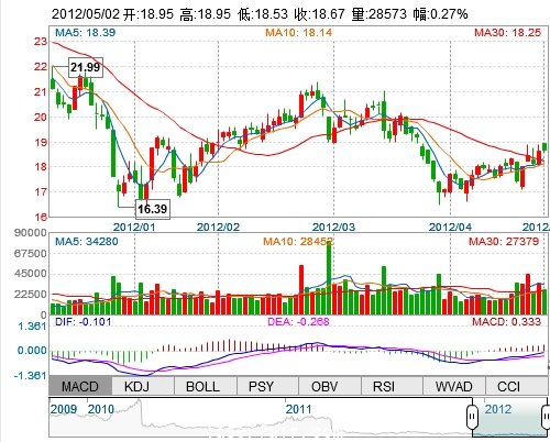 今 開: 18.95 成交量: 28573手 振 幅: 2.26% 最 高: 18.95 成交額: 5336.04萬 換手率: 1.40% 最 低: 18.53 總市值: 55.57億 市凈率: 4.58 昨 收: 18.62 流通...