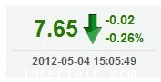 | 今 開: | 7.67 | 成交量: | 22141手 | 振 幅: | 1.30% |