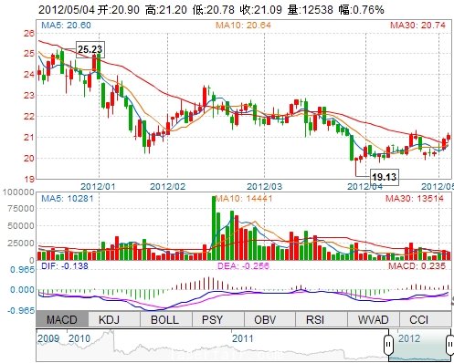 今 開: 20.90 成交量: 12537手 振 幅: 2.01% 最 高: 21.20 成交額: 2634.73萬 換手率: 1.05% 最 低: 20.78 總市值: 90.10億 市凈率: 6.35 昨 收: 20.93 流通...