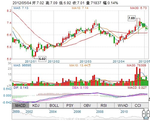 | 今 開: | 7.02 | 成交量: | 71836手 | 振 幅: | 2.43% |