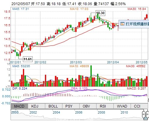 今 開: 17.50 成交量: 74137手 振 幅: 4.37% 最 高: 18.18 成交額: 13236.32萬 換手率: 1.82% 最 低: 17.41 總市值: 80.47億 市凈率: 3.05 昨 收: 17.61 流通...