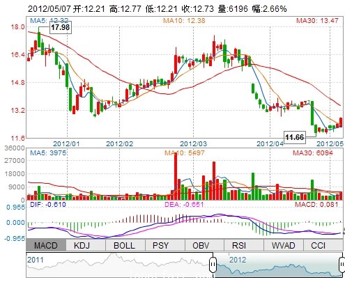 今 開: 12.21 成交量: 6195手 振 幅: 4.52% 最 高: 12.77 成交額: 779.89萬 換手率: 3.64% 最 低: 12.21 總市值: 8.53億 市凈率: 2.74 昨 收: 12.40 流通市值...