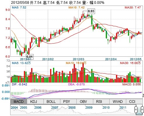 | 昨 收: | 7.54 | 流通市值: | 71.34億 | 市盈率TTM: | 22.96 |