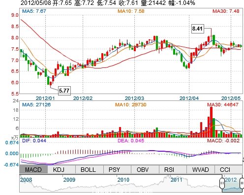 昨 收: 7.69 流通市值: 20.91億 市盈率TTM: 34.52
