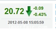 今 開: 20.85 成交量: 46882手 振 幅: 3.75%