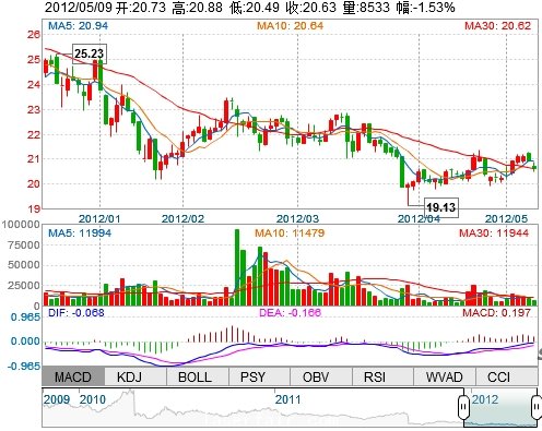 今 開: 20.73 成交量: 8533手 振 幅: 1.86% 最 高: 20.88 成交額: 1762.06萬 換手率: 0.71% 最 低: 20.49 總市值: 88.13億 市凈率: 6.21 昨 收: 20.95 流通市...