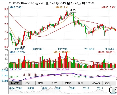 昨 收: 7.34 流通市值: 70.30億 市盈率TTM: 22.62
