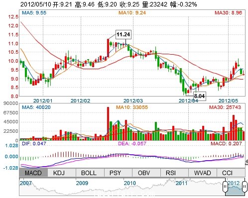 今 開: 9.21 成交量: 23242手 振 幅: 2.80% 最 高: 9.46 成交額: 2168.77萬 換手率: 1.20% 最 低: 9.20 總市值: 18.43億 市凈率: 3.82 昨 收: 9.28 流通市值...