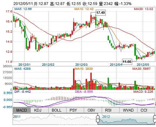 今 開: 12.87 成交量: 2341手 振 幅: 2.51%