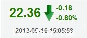 | 今 開: | 22.54 | 成交量: | 1186手 | 振 幅: | 1.33% |