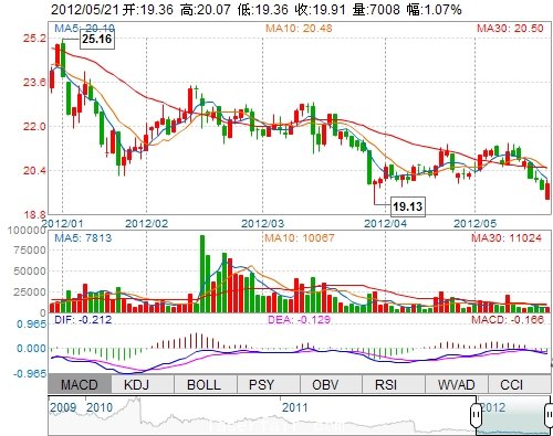 今 開: 19.36 成交量: 7008手 振 幅: 3.60% 最 高: 20.07 成交額: 1390.35萬(wàn) 換手率: 0.59% 最 低: 19.36 總市值: 85.06億 市凈率: 6.00 昨 收: 19.70 流通市...