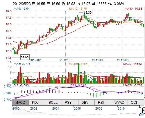 今 開: 16.55 成交量: 46857手 振 幅: 3.68% 最 高: 16.59 成交額: 7609.14萬 換手率: 1.15% 最 低: 15.98 總市值: 71.60億 市凈率: 2.71 昨 收: 16.58 流通...