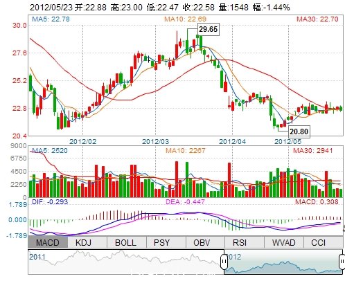 | 今 開: | 22.88 | 成交量: | 1547手 | 振 幅: | 2.31% |