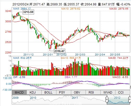| 昨 收: | 2676.60 | 成交量: | 6478145手 |