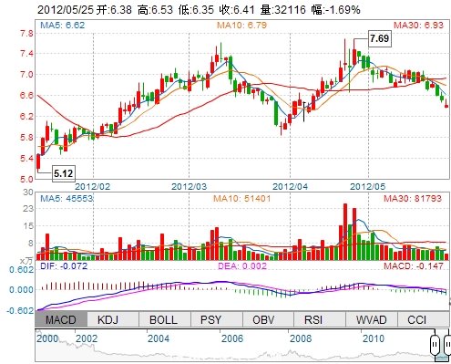 今 開: 6.38 成交量: 32115手 振 幅: 2.76% 最 高: 6.53 成交額: 2063.33萬 換手率: 0.74% 最 低: 6.35 總市值: 28.00億 市凈率: 2.06 昨 收: 6.52 流通市值...