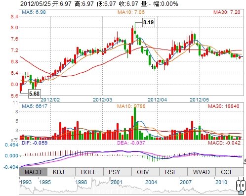 今 開: 0.00 成交量: 0手 振 幅: 0.00% 最 高: 0.00 成交額: 0.00萬 換手率: 0.00% 最 低: 0.00 總市值: 12.11億 市凈率: 2.99 昨 收: 6.97 流通市值: 12.11...