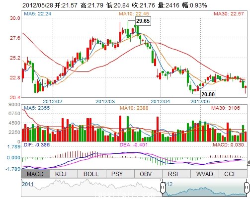 今 開: 21.57 成交量: 2416手 振 幅: 4.41% 最 高: 21.79 成交額: 513.52萬 換手率: 2.31% 最 低: 20.84 總市值: 7.62億 市凈率: 2.74 昨 收: 21.56 流通市值...