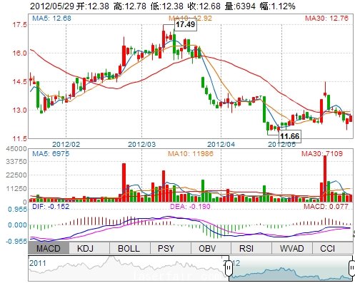 | 今 開: | 12.38 | 成交量: | 6393手 | 振 幅: | 3.19% |