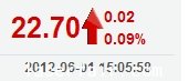 | 今 開: | 22.60 | 成交量: | 1814手 | 振 幅: | 1.01% |