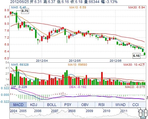 | 今 開: | 6.31 | 成交量: | 66344手 | 振 幅: | 3.29% |
