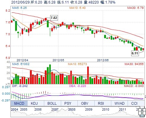 | 今 開: | 6.20 | 成交量: | 48220手 | 振 幅: | 2.76% |