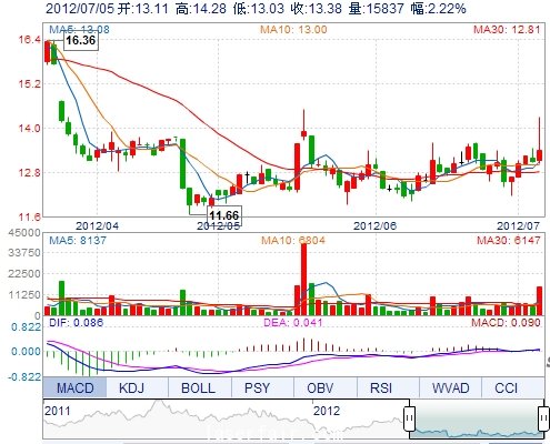 今 開: 13.11 成交量: 15836手 振 幅: 9.55% 最 高: 14.28 成交額: 2123.21萬 換手率: 4.76% 最 低: 13.03 總市值: 8.96億 市凈率: 2.88 昨 收: 13.09 流通市...