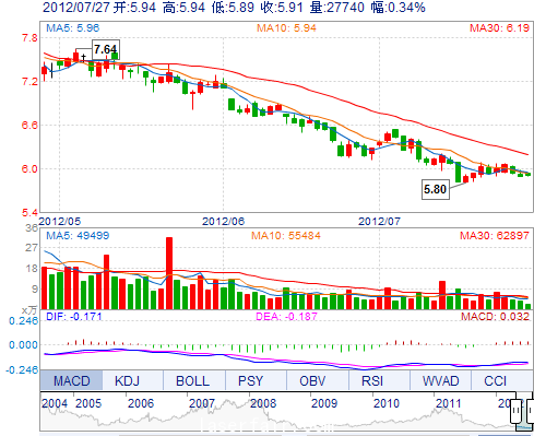 | 今 開: | 5.94 | 成交量: | 27739手 | 振 幅: | 0.85% |