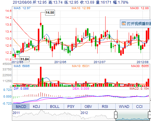 | 今 開(kāi): | 12.95 | 成交量: | 16170手 | 振 幅: | 5.87% |