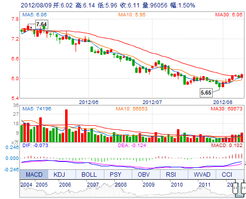 | 昨 收: | 6.02 | 流通市值: | 57.81億 | 市盈率TTM: | 18.60 |