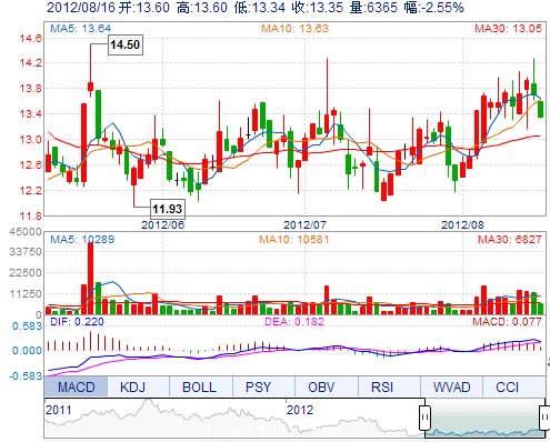 今 開: 13.60 成交量: 6364手 振 幅: 1.90% 最 高: 13.60 成交額: 854.80萬 換手率: 1.91% 最 低: 13.34 總市值: 8.94億 市凈率: 2.87 昨 收: 13.70 流通市值...
