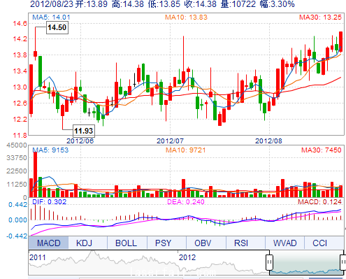 今 開: 13.89 成交量: 10721手 振 幅: 3.81% 最 高: 14.38 成交額: 1520.81萬 換手率: 3.22% 最 低: 13.85 總市值: 9.63億 市凈率: 3.09 昨 收: 13.92 流通市...